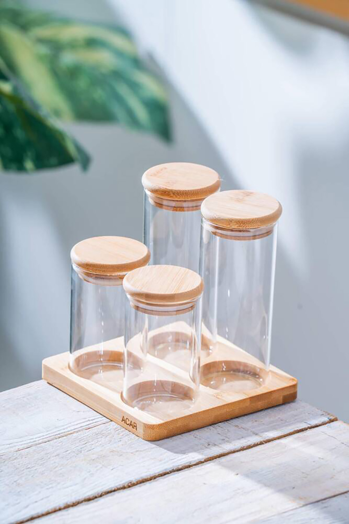 Silindirik cam kavanozlardan oluşan dört parçalı baharatlık seti, mutfağınızda hem fonksiyonellik hem de estetik görünüm sunar. Dayanıklı cam yapısı sayesinde baharatlarınızı taze ve hijyenik bir şekilde muhafaza eder. Doğal bambu standı ise ürünleri düzenli bir şekilde sergilemenizi sağlarken, mutfağınıza sade ve modern bir hava katar.