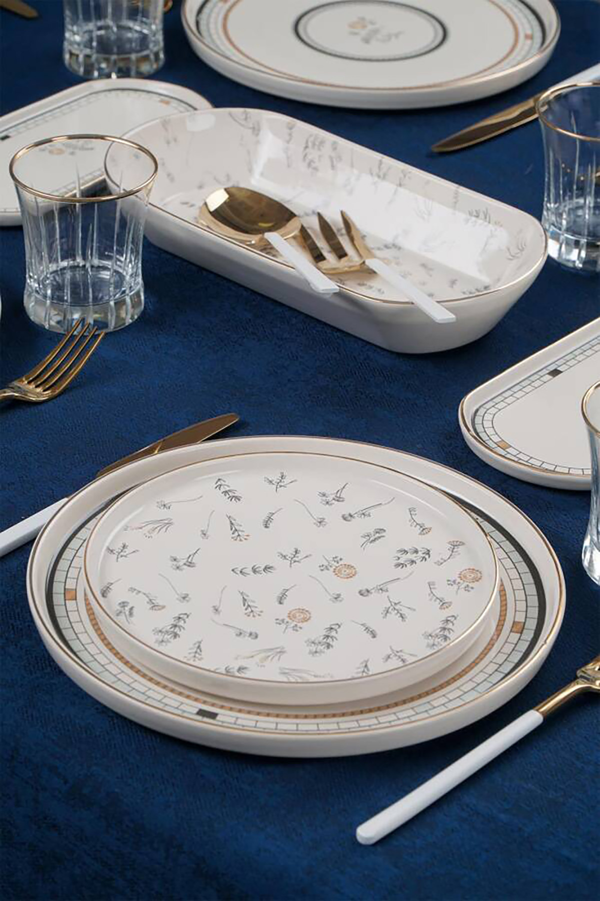 6 adet çorba kase 6 adet çukur yemek tabağı 6 adet pasta tabağı 6 adet servis tabağı 1 adet gondol kase 2 adet kayık tabak