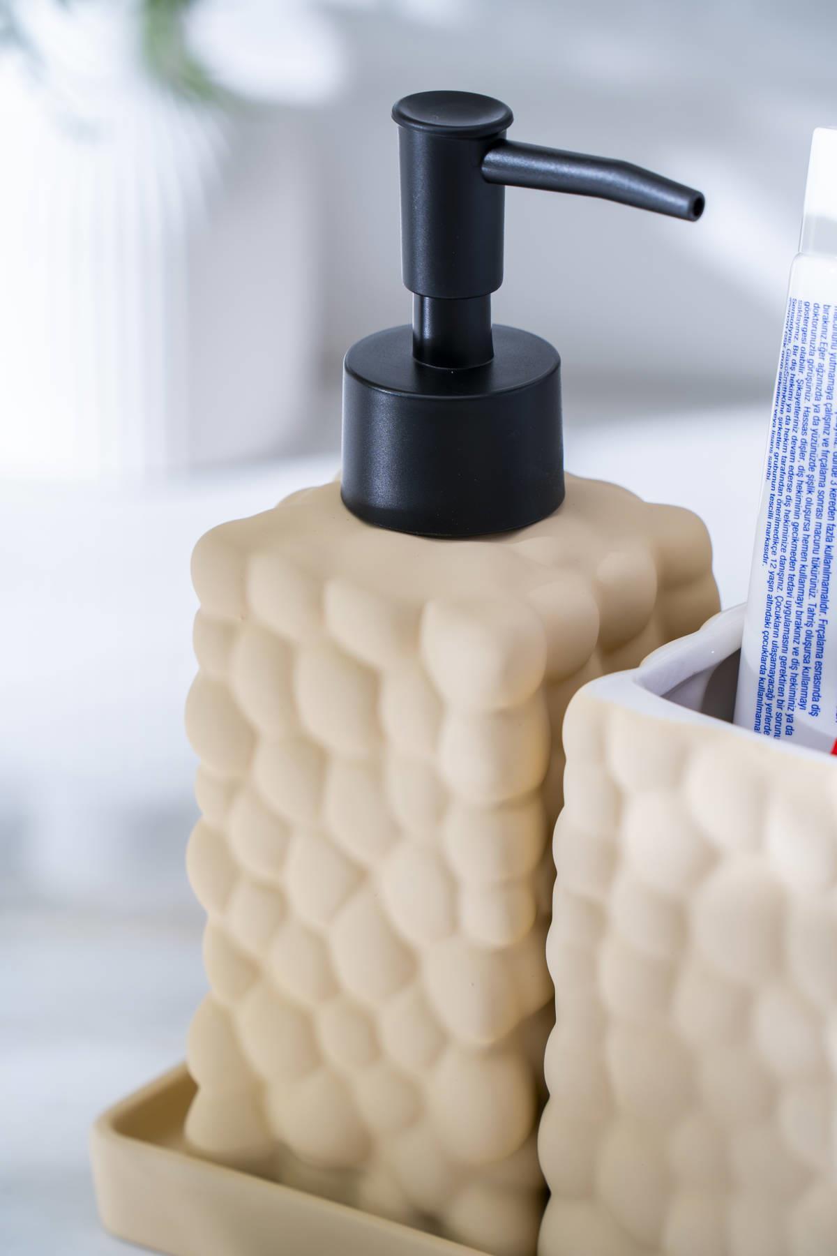 Bej rengiyle sıcak, doğal ve yumuşak bir görünüm sunan bu set, modern ya da klasik dekorasyonlarla kolayca uyum sağlar. Sade tasarımı ve yuvarlak hatları sayesinde banyonuzda ferah ve şık bir atmosfer oluşturur. Hem fonksiyonel kullanım hem de dekoratif görünüm arayanlar için ideal bir banyo aksesuarı tercihidir.