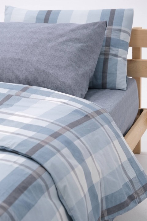 Ekoseli Lastikli Çarşaflı Pamuklu Tek Kişilik Nevr