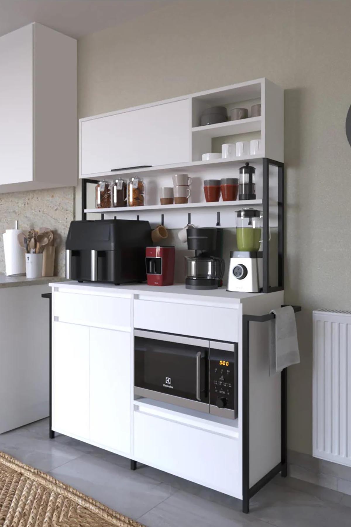 Fonksiyonel Raflar: Fincanlar, kahve makineleri, kavanozlar ve aksesuarlar için ideal düzenleyici alanlar sunar.