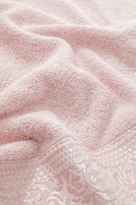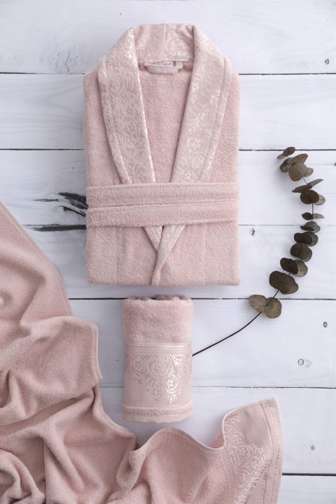 Fiesta Pamuklu Jakarlı Tekli Bornoz Seti - Pudra