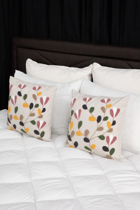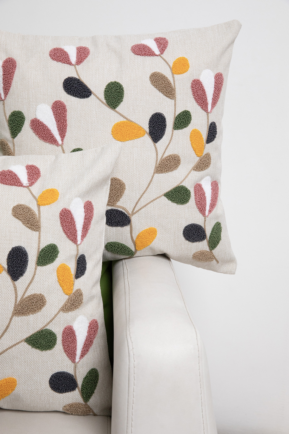 Flower Keten Punch Nakışlı 2'li Kırlent Kılıfı 42x42 - Renkli