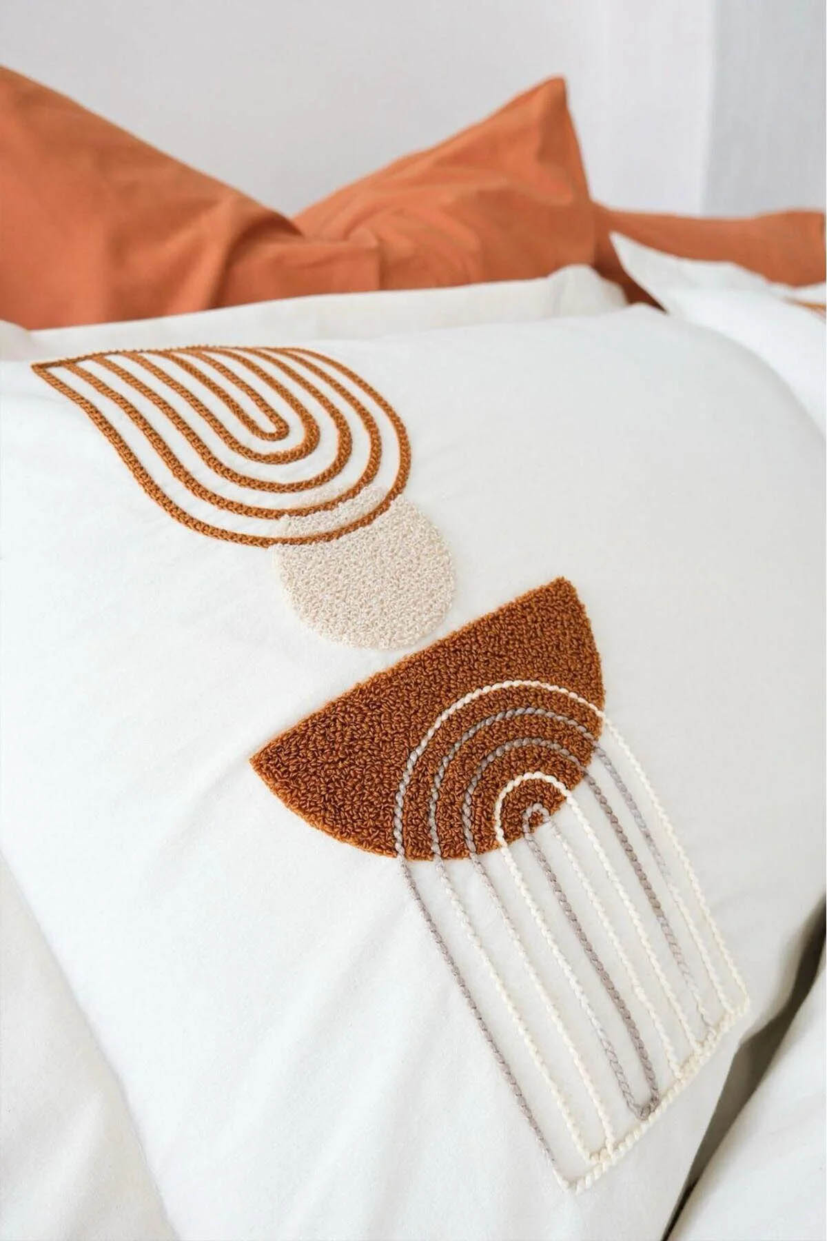 İyi Geceler Babil %100 Pamuklu Natural Çift Kişilik 7 Parça Nevresimli Müslin Pike Takımı - Kiremit