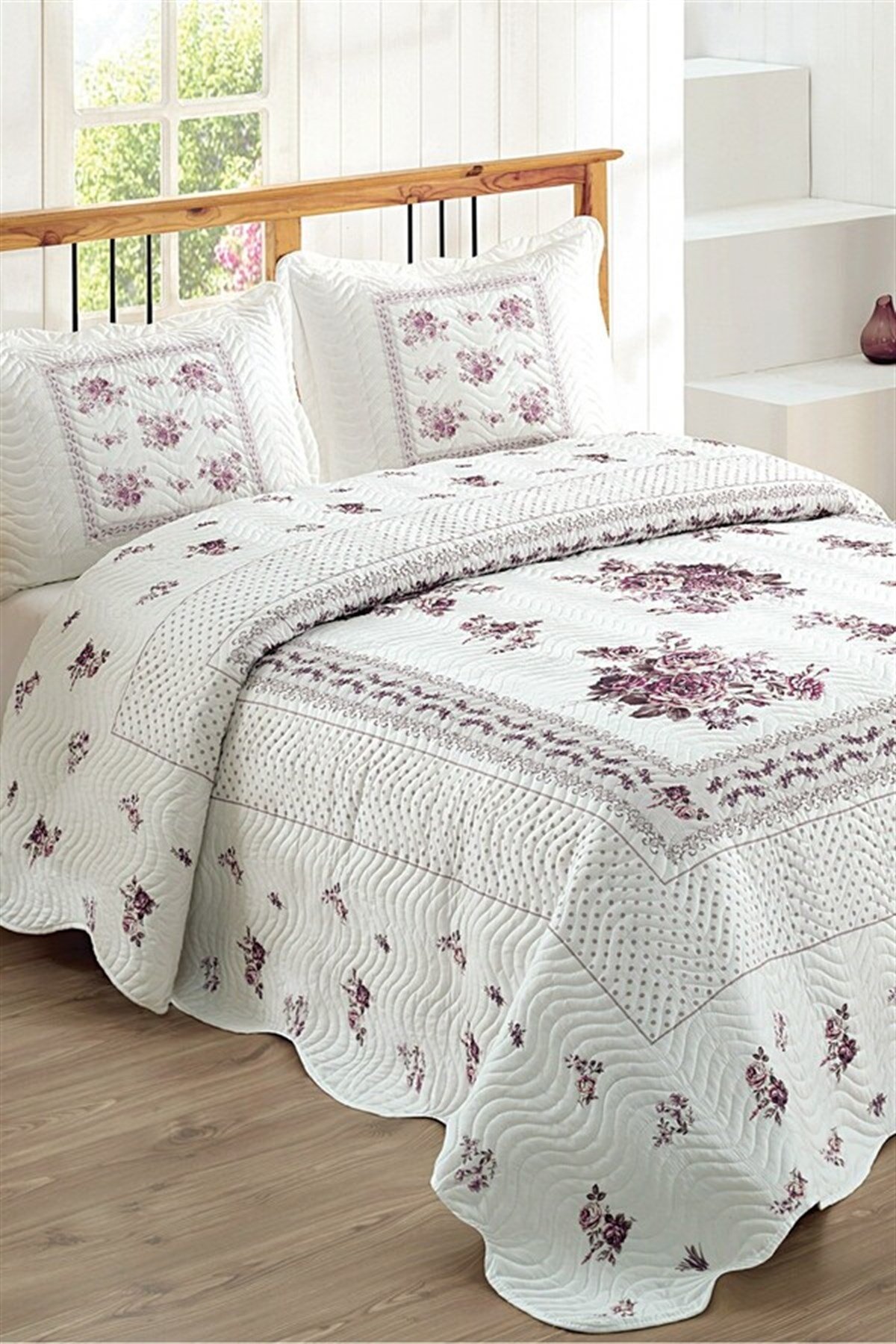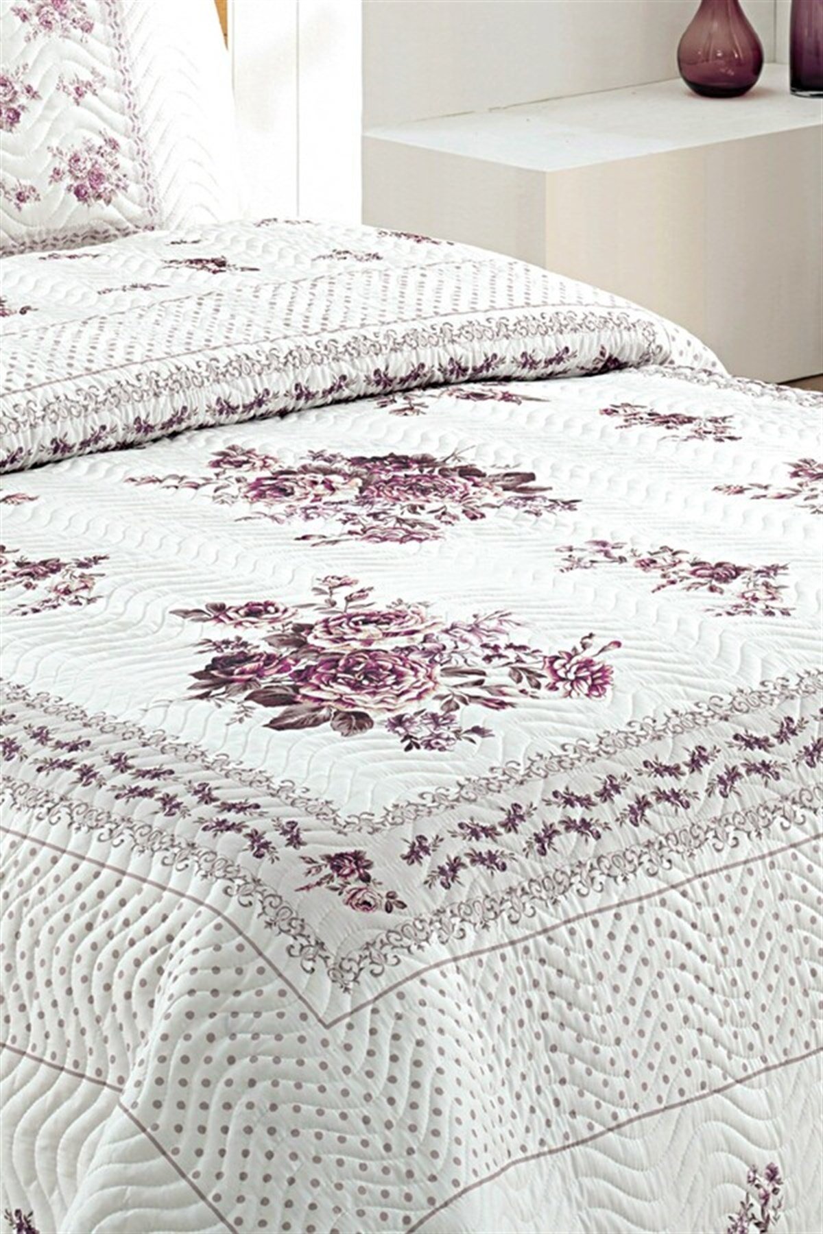 Örtüm Flower Çift Kişilik Kapitone Yatak Örtüsü Takımı - Lila