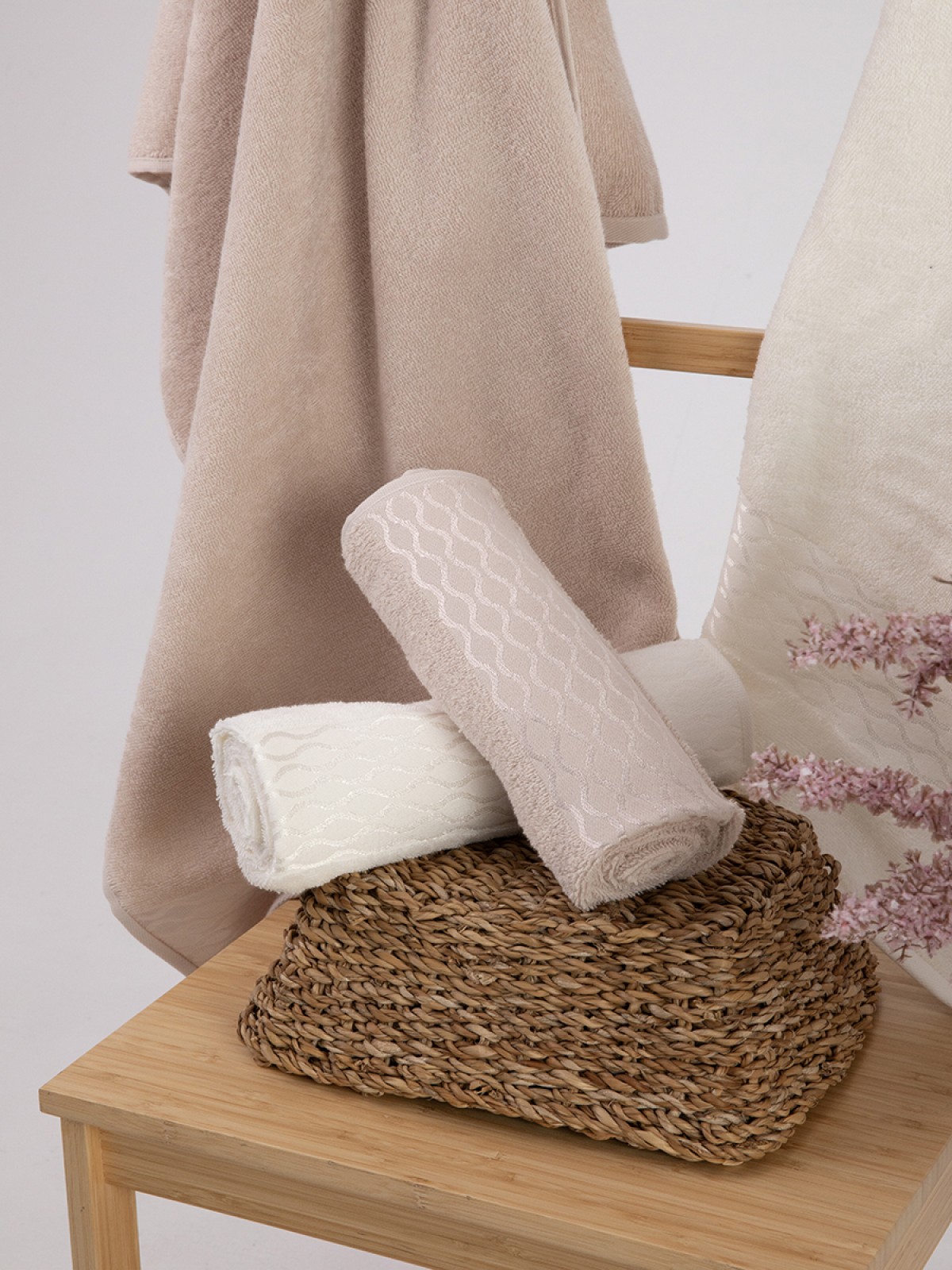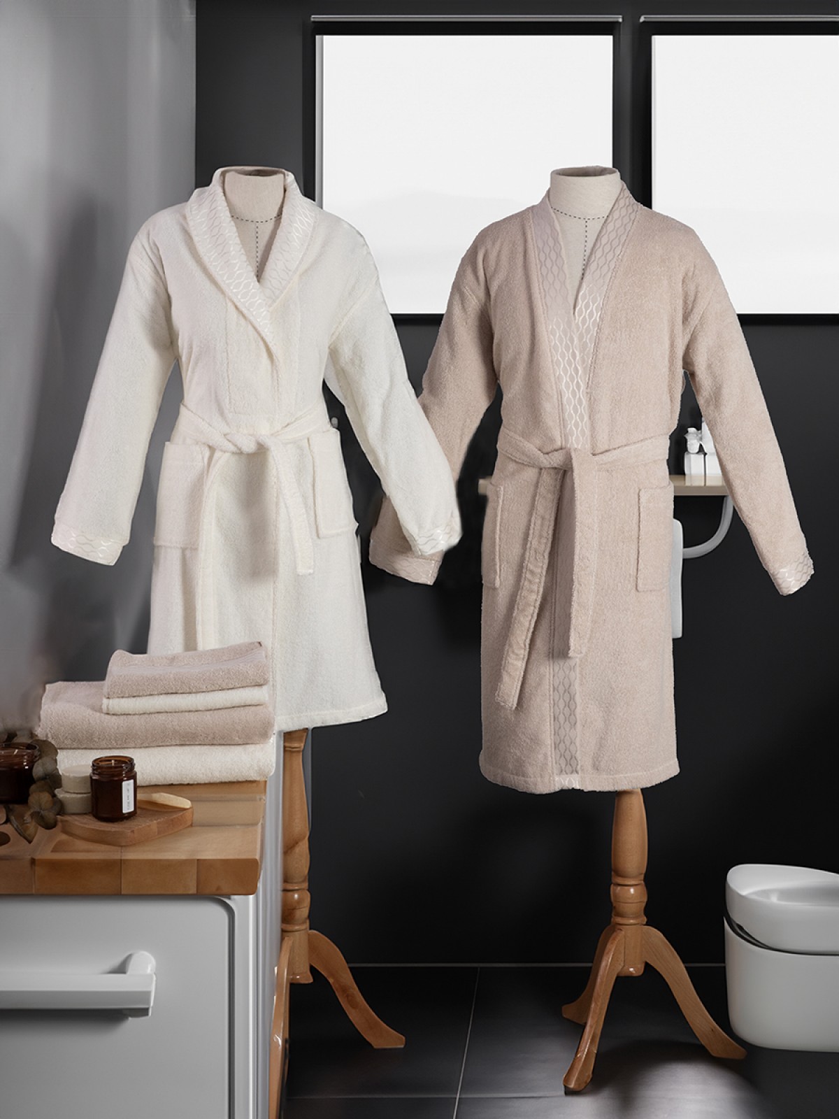 2 Adet Bornoz, 2 Adet Baş Havlusu, 2 Adet Banyo Havlusu