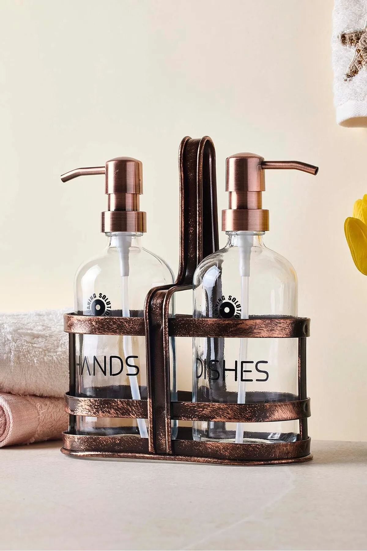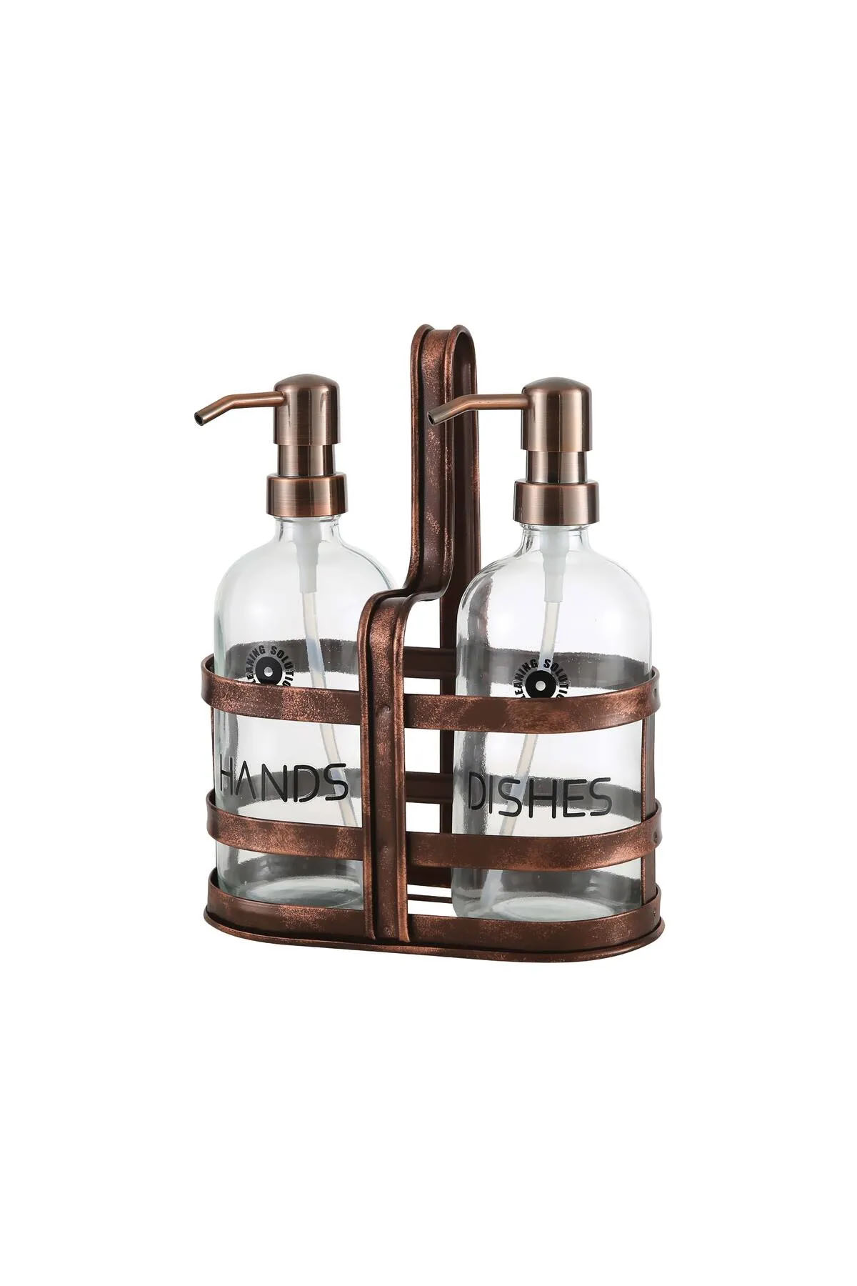 Retro eskitme metal tasarımıyla dikkat çeken bu 2’li sıvı sabunluk seti, banyonuza veya mutfağınıza şıklık ve fonksiyonellik katar. Her biri 500 ml hacme sahip olan yuvarlak formdaki sabunluklar, dayanıklı metal stand üzerinde güvenle durarak hem kullanım kolaylığı sağlar hem de alan tasarrufu sunar. Eskitme yüzey detayı, vintage bir hava yaratırken, uzun ömürlü malzemesi günlük kullanıma uygundur.