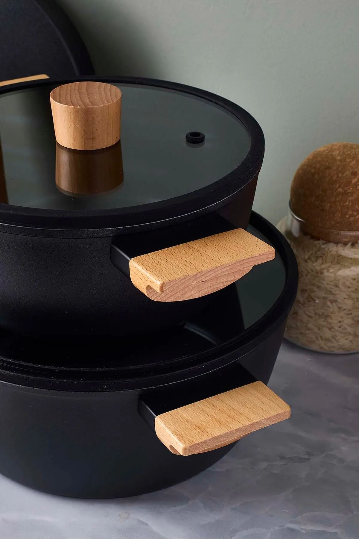 1 adet 24x10.5 cm ahşap saplı kapaklı derin tencere