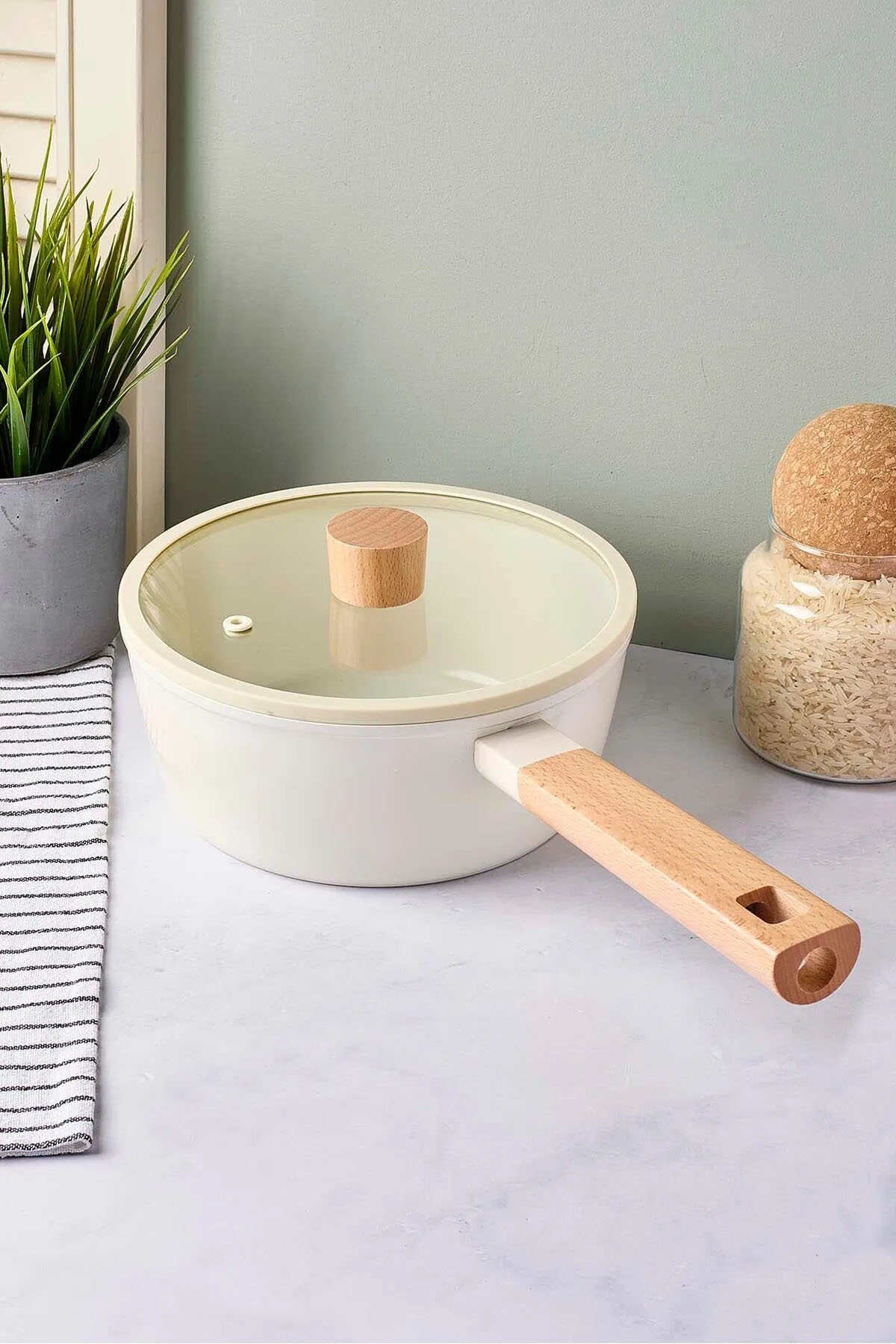 Doğal ve sıcak bir görünüm sunan bu 20 cm ahşap saplı tencere, mutfağınıza hem estetik hem de fonksiyonellik katıyor. Bej rengiyle sade ve şık bir tasarıma sahip olan bu tencere, orta boy yapısıyla günlük yemekleriniz için ideal bir pişirme alanı sunar. Ahşap sap detayı ise kullanım sırasında konfor ve güvenlik sağlayarak doğal bir dokunuş kazandırır.